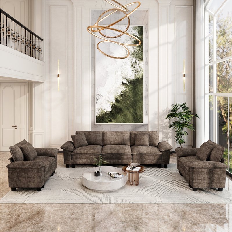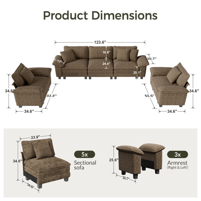 3-piece Upholstered Modular Sectional Sofa Sets, Oversized Couch Set With Sofa And Armchairs