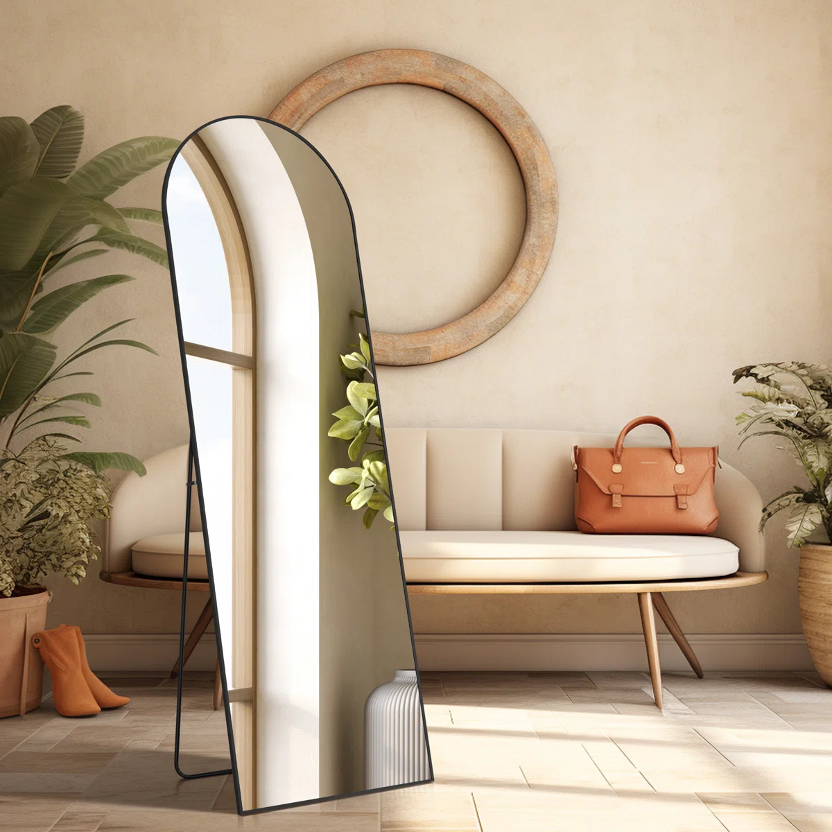 Enhance your interior with our Arch-Shaped Full Body Mirror, allowing you to choose the perfect fit for your space. One of the standout features of this mirror is its innovative design, which offers three different usage options. Hang it on the wall to create a stylish focal point in any room. Alternatively, use the sturdy stand provided to prop it up wherever you need it, whether in your bedroom, dressing area, or even a corner of your living room. Upgrade your home decor with our Arched Full-Length Mirror and enjoy the flexibility and beauty it brings to your space.